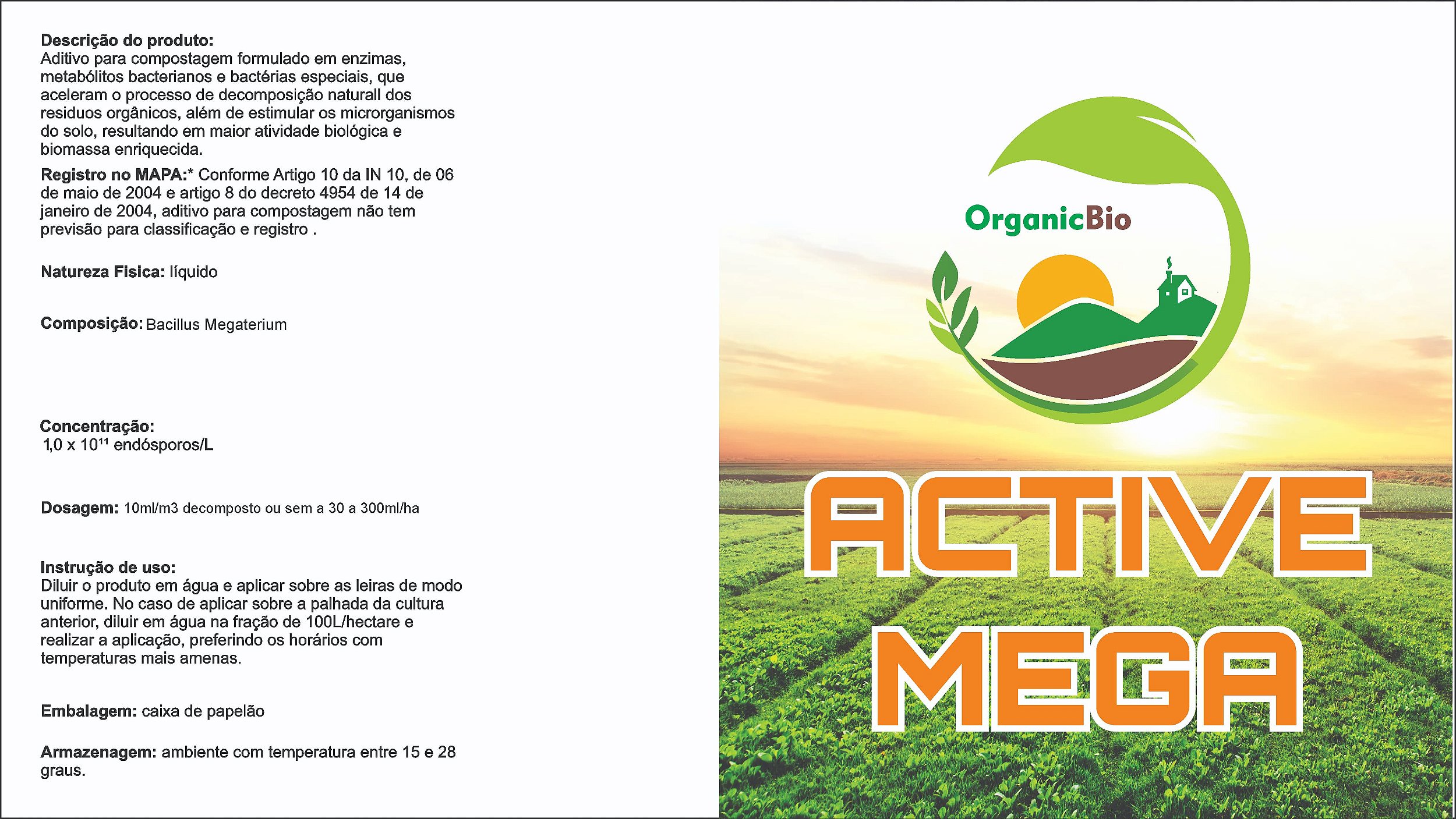 Aplicação em leiras de compostagem ou diretamente sobre palhada agrícola.